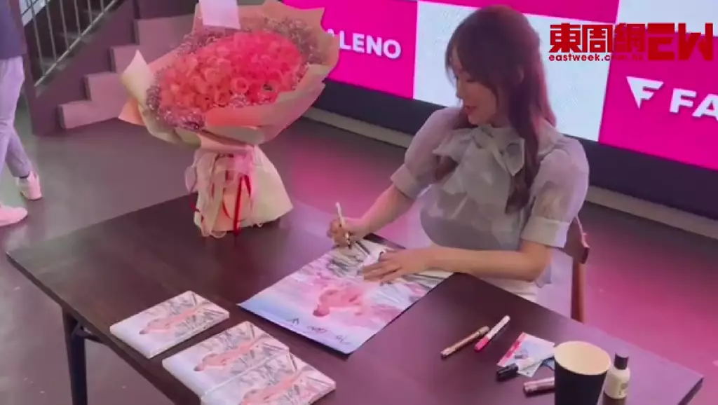 繪麗奈更請了兩名六呎高猛男做保鑣維持秩序,人潮絡繹不絕,男女粉絲興奮合照!
