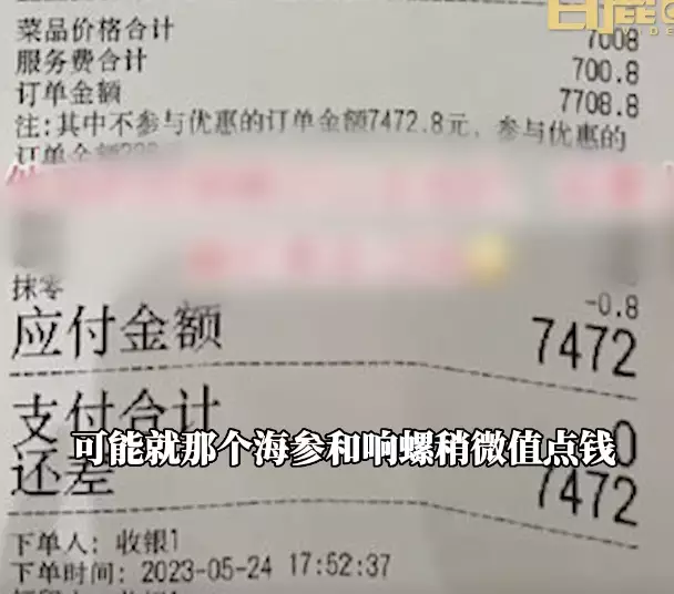 餐廳老闆為她們6人點了「11道菜」,人均每人要付1245元(約1,372港元),除了要價1,760元(約1,939港元)的「雞湯堂灼大響螺」和2,112元(約2,326港元)的「蔥燒遼參」以外,大多數都是家常菜,味道也一般。而且陳女士還提前問過餐廳的價位,對方還表示「不貴」,讓她覺得「去照顧朋友生意,對方卻把自己當羊宰」。後來陳女士找餐廳老闆抱怨,最終協商成功退了她3,000元(約3,305港元)。