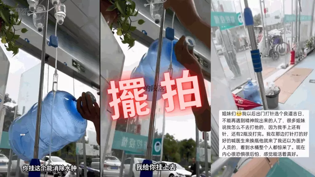 「女子輸液被陌生男子拔針插進礦泉水桶」一事經查證是擺拍。