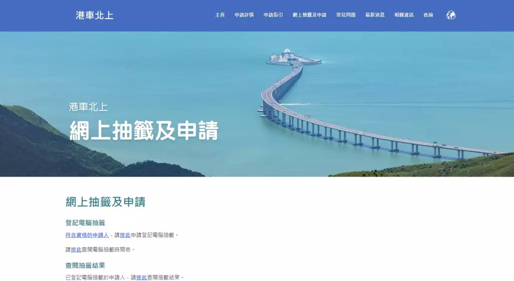 「港車北上」7月1日起實施,中籤者最早可於6月1日遞交申請。負責驗車的中國檢驗有限公司1日在網頁上刊登公告,指即日起正式啟用「港車北上」網上預約服務,車主可於中檢網站或中檢的微信公眾號預約。中檢提醒,相關驗車服務不設「即日籌」,所有車主均需先在網上進行預約。預約時請須確認車主的「港車北上」申請已通過粵港兩地政府部門的審批,否則該預約將被取消。