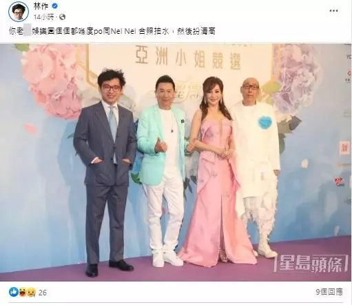 之後林作又出Po爆粗怒轟一眾圈中人晒與Nel Nel合照悼念抽水,但他反被網民嘲五十步笑百步。