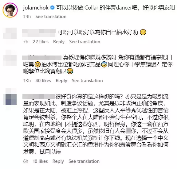 林作於社交平台轉發SoChing退團的相關新聞,並留言:「可以以後做 Collar 的伴舞dancer吧,好似你男友咁。」
