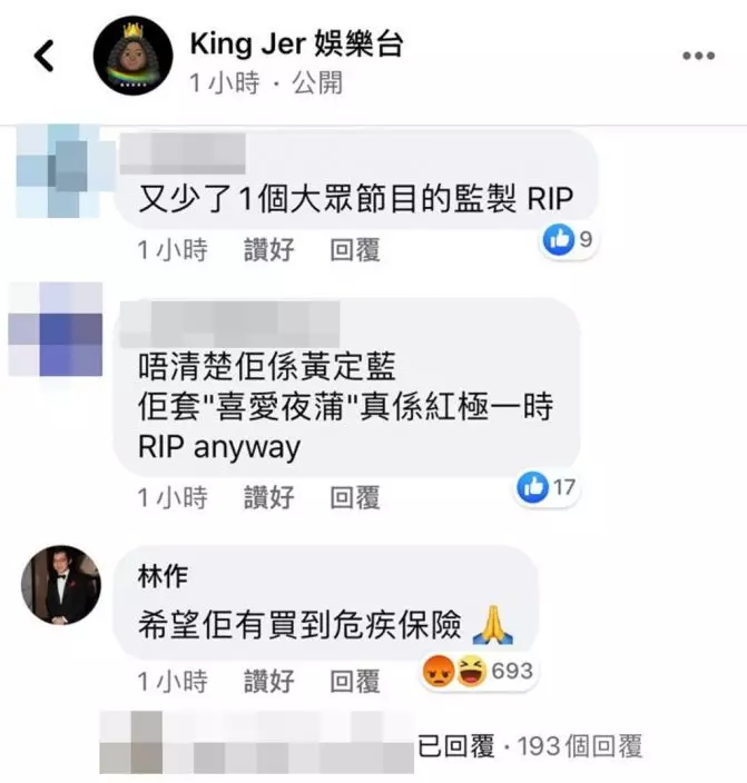 「金牌監製」錢國偉於2020年10月因胰臟惡疾病逝,有網民發現林作在Facebook專頁「King Jer娛樂台」一篇有關錢國偉離世的報道下留言:「希望佢有買到危疾保險。」
