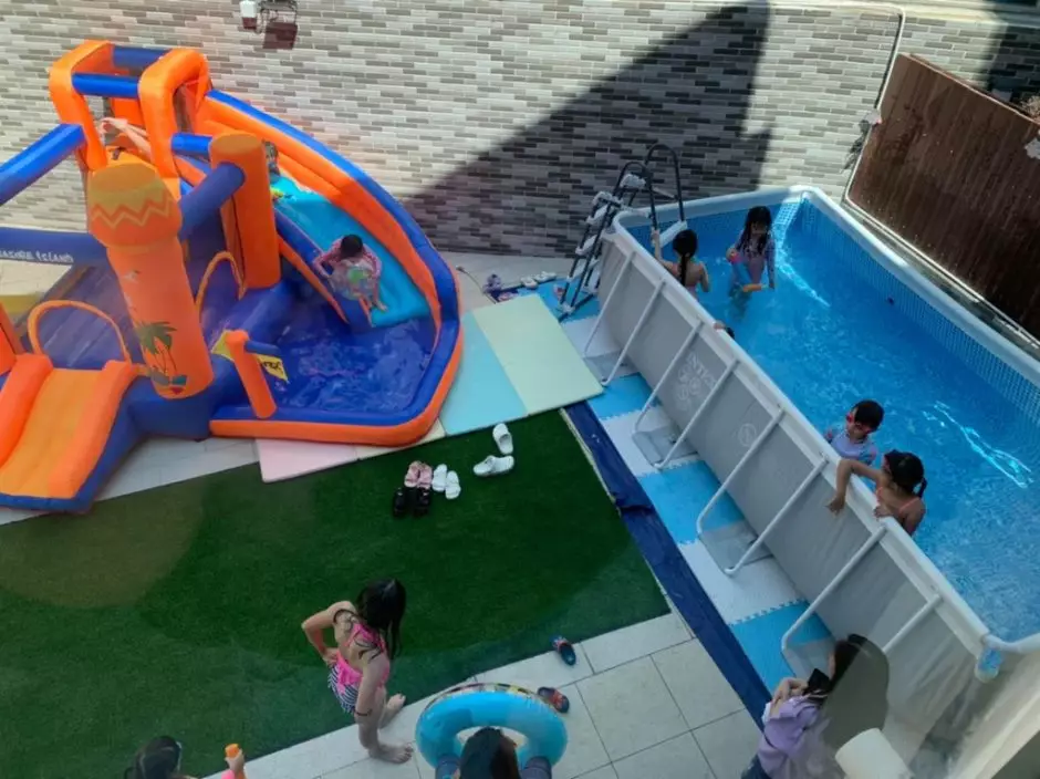 仲有一個附滑梯的吹氣小泳池,好誇張!