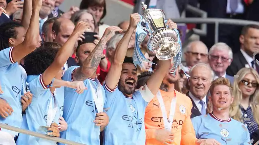 曼城今季贏得英超冠軍後,再下一城贏得足總盃。曼城將於6月10日將國際米蘭爭奪歐聯冠軍,若成功奪冠,將繼曼聯後成為第二隊奪得三冠王的英格蘭球隊。