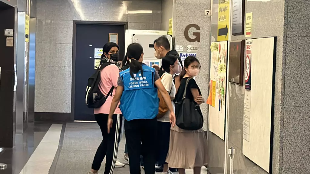 一名女翻譯(粉紅衣)隨同到醫院。