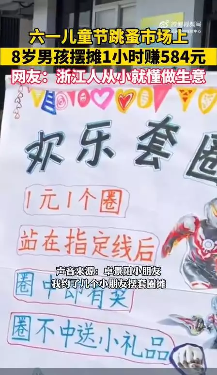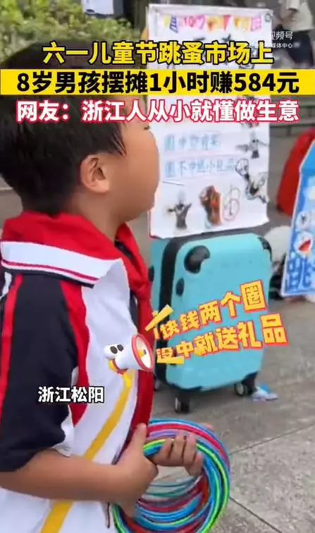 據內地媒體報導,日前,來自內地浙江松陽的1名8歲男孩在節假日,和朋友在跳蚤市場上設置套圈攤位,他們在市場上搭建了一個簡易的攤位,並擺放一些小玩具,讓顧客通過圈套贏取禮物,吸引不少人前來挑戰。而他雖然年幼卻有自己的「生意經」,「套不中,也能獲得小禮品」,這樣顧客來了之後也不會空手而歸,因此生意相當好!