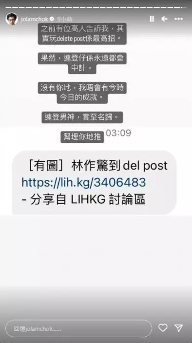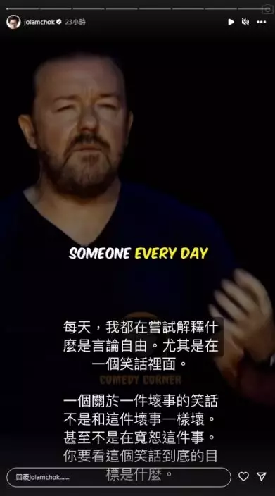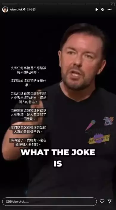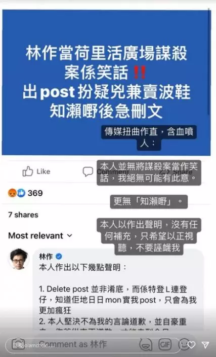 林作再於IG Story連環出發文,強調並無將謀殺案當作笑話!