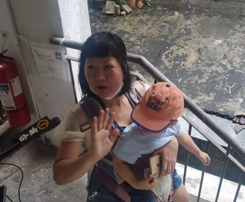 涉案母親被蒙頭帶走。