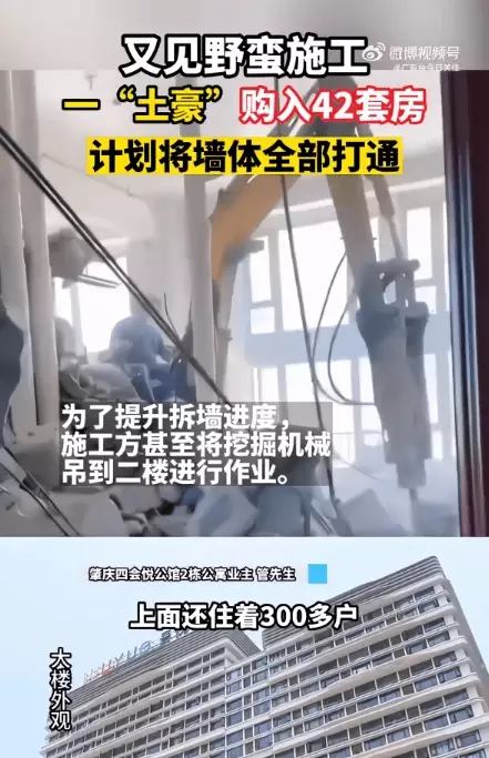 在廣東肇慶,有業主購42套房全拆牆打通,樓上現裂痕,其他業主人心惶惶。