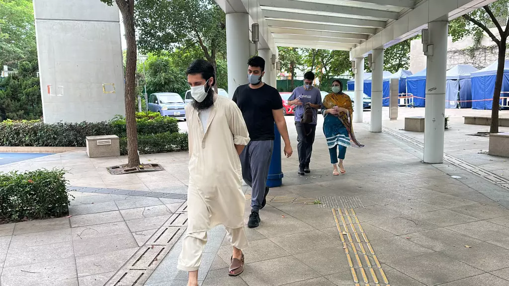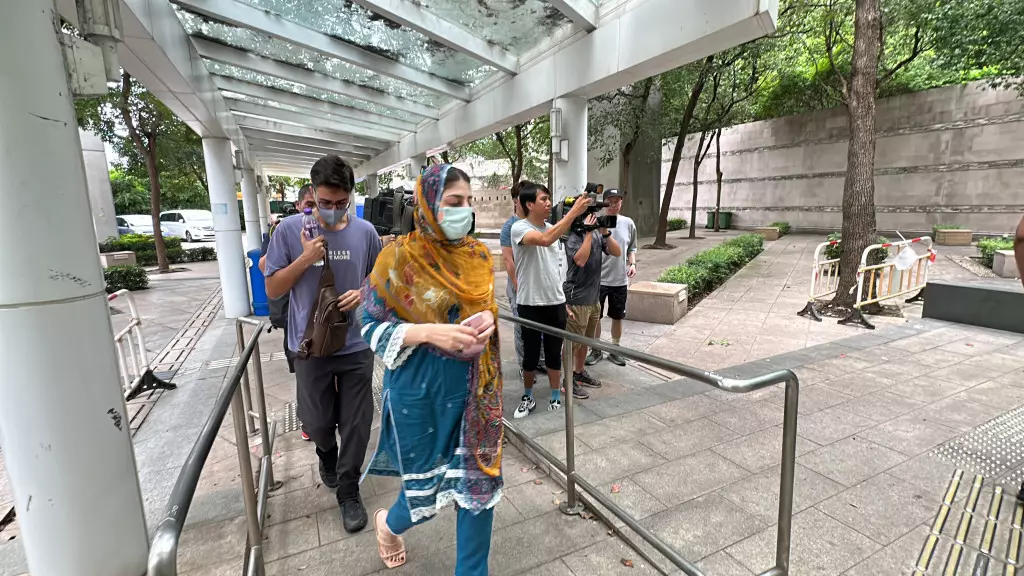 受害3名女童的父親(左)與親屬到殮房認屍。