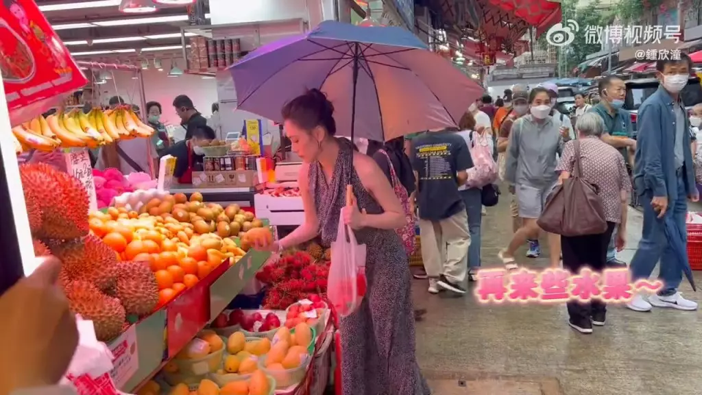 鍾欣潼近期在微博分享影片,並寫道「香港街拍Vlog安排了,街拍、買菜兩不誤」,影片場景大概分四個,包括天橋、古玩店、街頭及街市,化上精緻妝容的她至少換了三個造型。其中在街市一幕穿起露肩連身褲,轉身露出白滑玉背,她除買了番茄稱晚上要煮番茄炒蛋,還拿起芒果聞聞,展現女神貼地一面。難得有女神在街市出現,眾街坊都被她吸引,甚至有人舉起手機拍攝,原來她是真空大露背上陣,側身看更非常危險,隨時走光,難怪如此多人行注目禮。