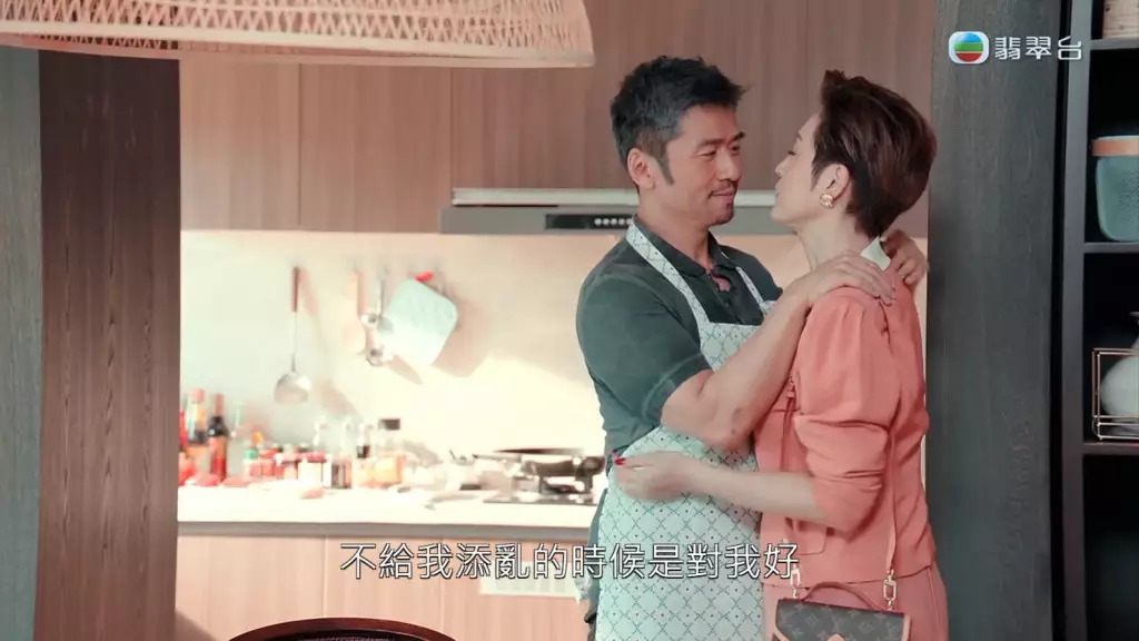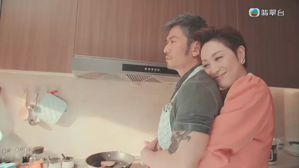 TVB劇集《一舞傾城》6月6日播出第17集,「青龍哥」唐文龍為社團頂罪入獄多年終於出獄,與妻子「沙律媽」陳法蓉重聚,重新過新生活。「沙律媽」陳法蓉為迎接老公出獄悉心打扮,到監獄外卻接不到老公。原來「青龍哥」唐文龍已提早回家為老婆親自下廚,「沙律媽」陳法蓉守生寡多年終於與老公重聚,二人開心得又攬又鍚,親密舉動恩愛又肉麻。
