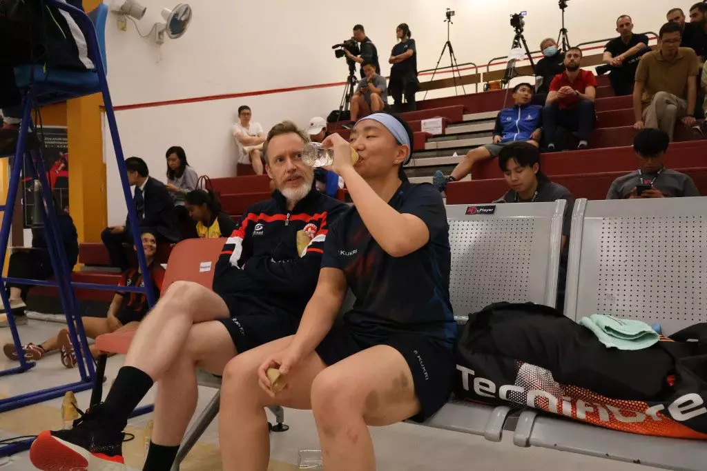 明日另一場戲碼是香港兩位準亞運女將、香港一姐何子樂對李嘉兒,前者今日以11:6、11:4、11:2勝印度Akanksha Salunkhe,在比賽途中曾被對手的球拍打到下巴,以「醫療暫停」到場邊給隊醫檢查,她表示:「那一下真的很痛,對方是沒有留力的打過來,幸好沒大礙,亦沒有流血,她事後亦跟我道歉。」