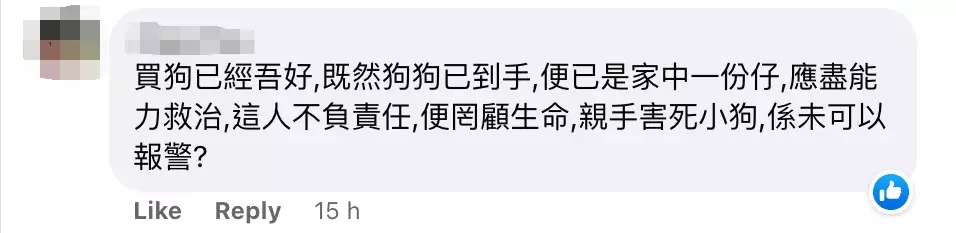 事件在網上引起熱議,網民怒轟棄養男的行為。有網民指,「買狗已經吾好,既然狗狗已到手,便已是家中一份仔,應盡能力救治,這人不負責任,便罔顧生命,親手害死小狗,係未可以報警?」、「一定要為佢討回公道!」、「真係好可憐!」