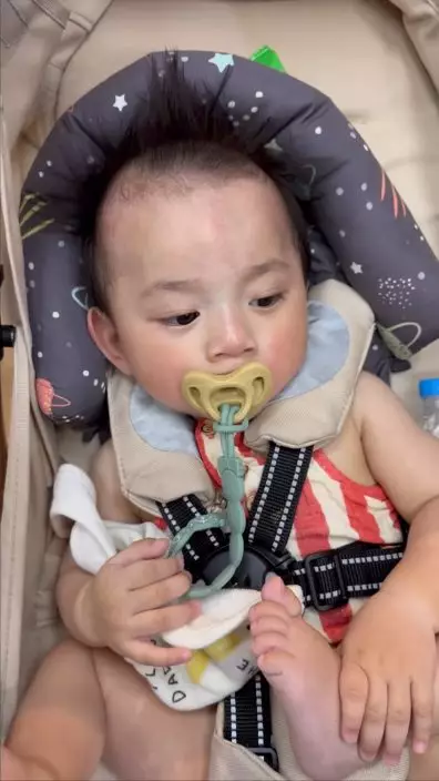 麥明詩首晒愛子正面照 七個月大仔仔出國表現乖巧