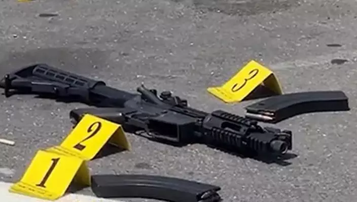 台灣台南市南區萬年五街一間水產店6月2日下午1時許發生槍擊案!一名男子開車抵達現場,下車後隨即手持步槍朝店面掃射20多槍,嚇壞附近民眾。由於警方提前接獲情報,早已在現場埋伏,見狀隨即連開3槍制止犯嫌。33歲林姓男子臀部中2槍,目前已被戒護送醫,稍早犯嫌開槍畫面曝光。