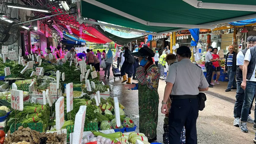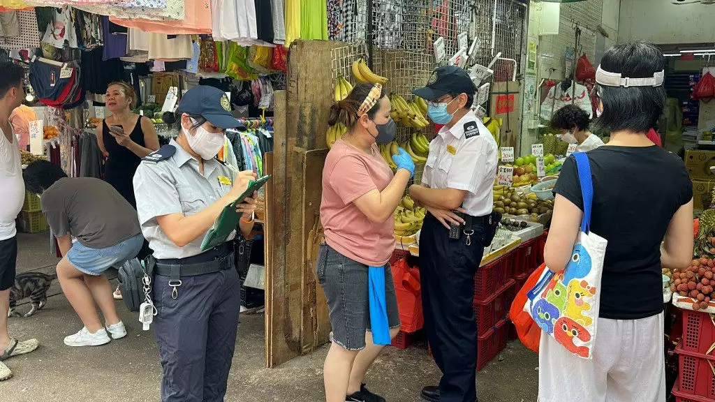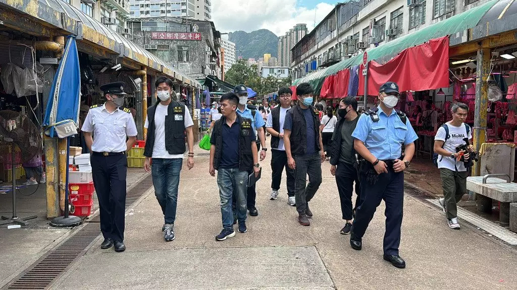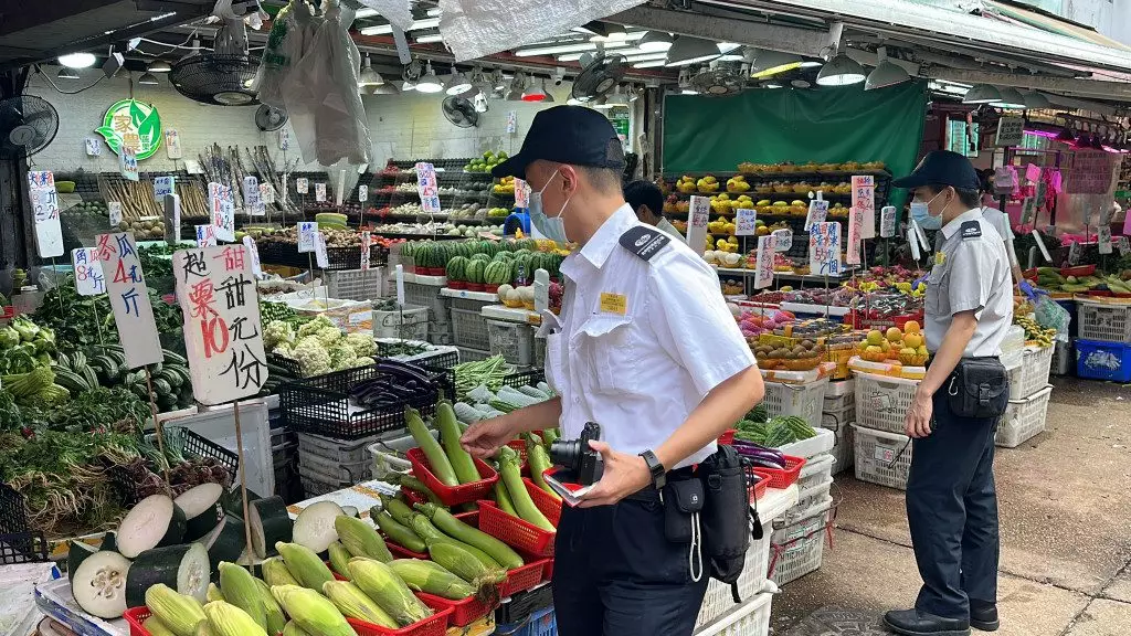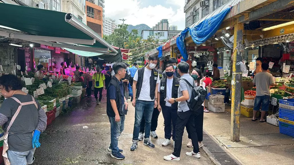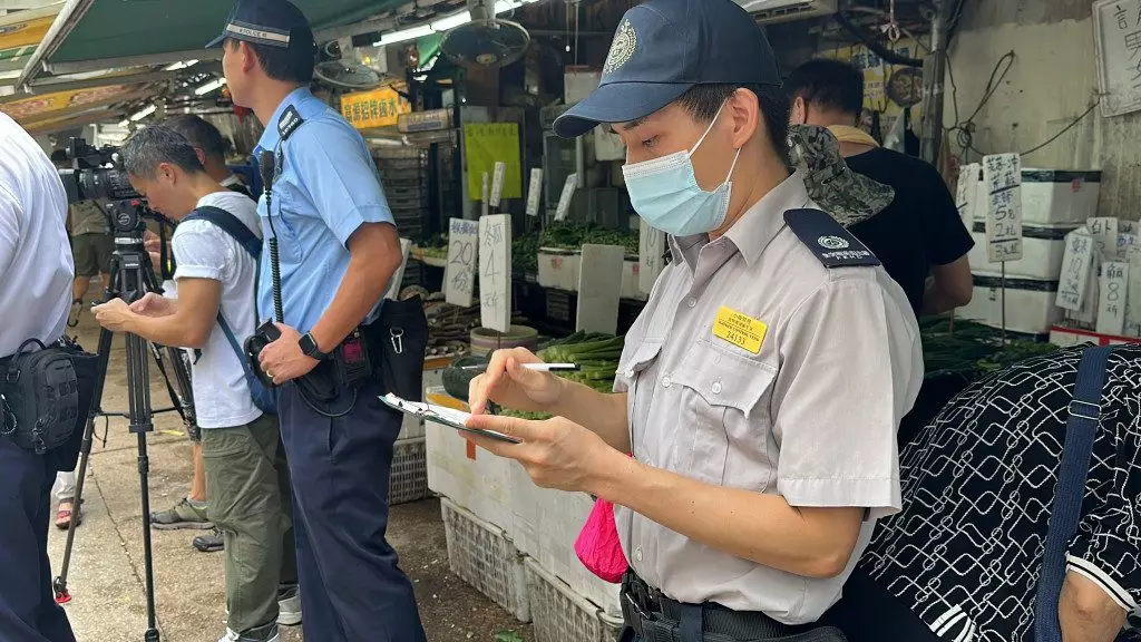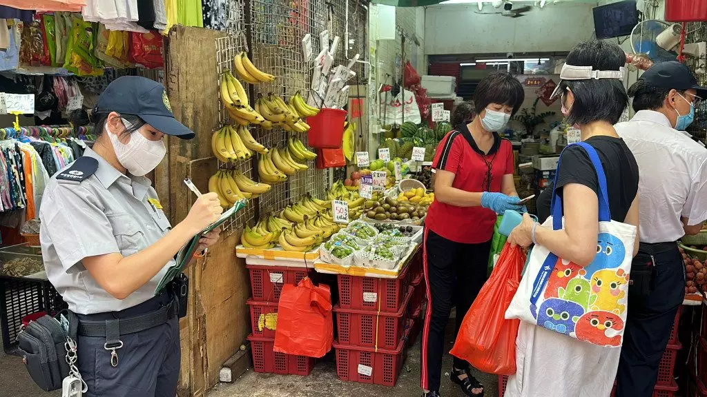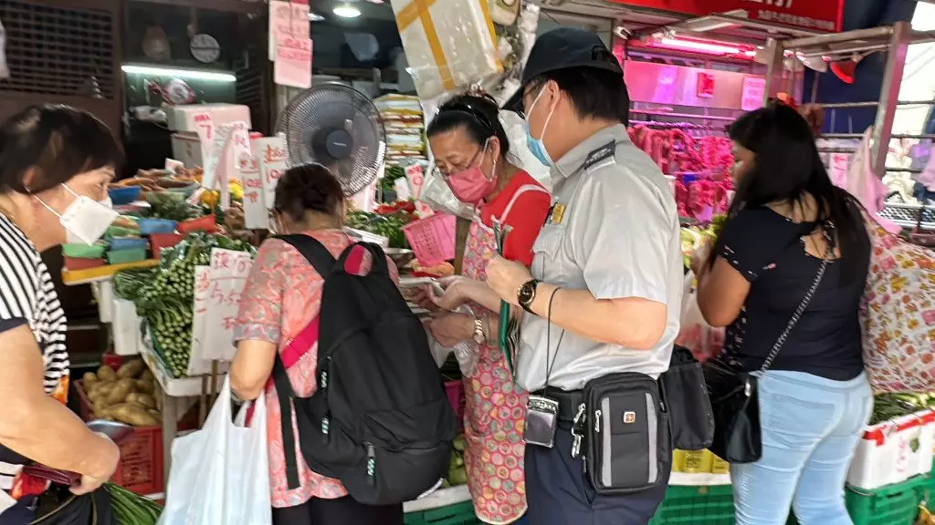 食環署人員巡查街市內各攤檔有否阻街違例。