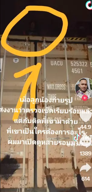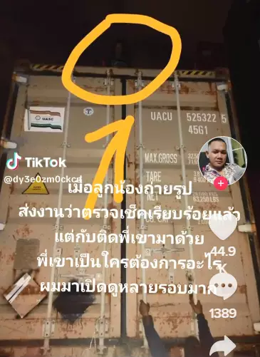 據外媒報導,用戶「dy3e0zmockcn」日前在Tiktok上分享了一段影片,指這是由他下屬發來的貨櫃巡邏畫面,當時已經是深夜,他在檢視時細看照片卻嚇了一大跳,因為在貨櫃上竟然有個黑色人影。