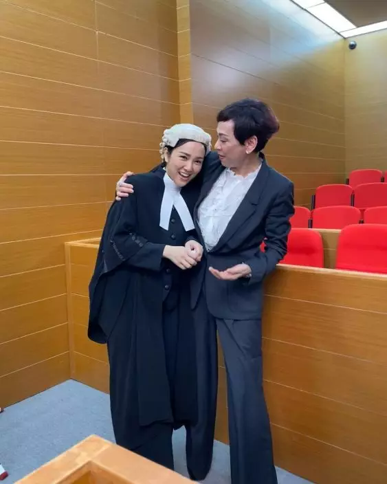 劉美娟亦開心Share花絮照,並謂:「今次不是做律師⋯⋯係法官。冇冷氣戴頭套好熱呀!」