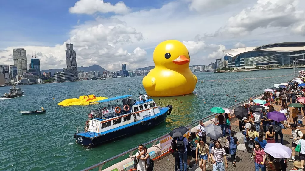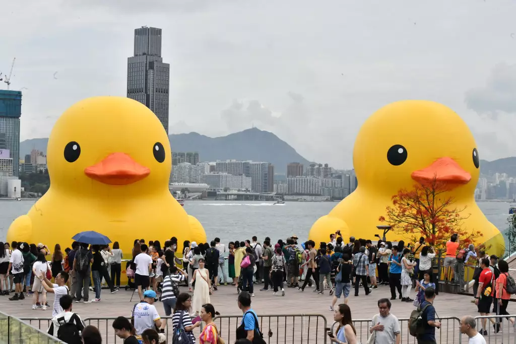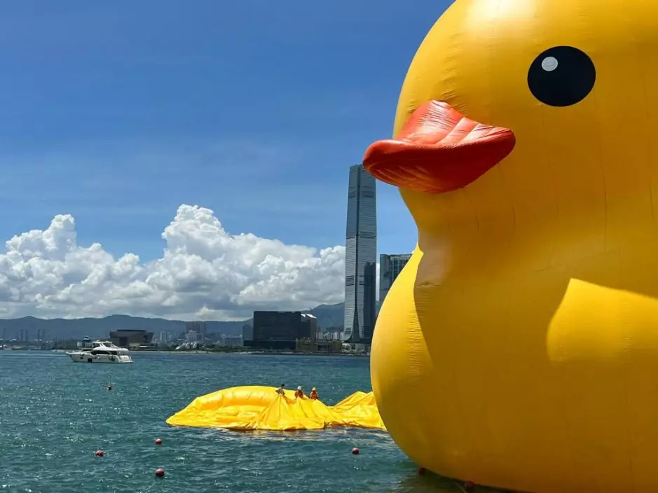 由荷蘭藝術家(Florentijn Hofman)創作的巨型橡皮鴨事隔十年再臨香港,展開為期兩星期的展覽。豈料展出首出,其中一隻「黃鴨」在6月10日下午1時50分突然漏氣,根據網上片段所見,鴨身突然漏氣,直至完全乾癟。現場所見,立刻有工作人員前來處置,暫時未知漏氣原因。