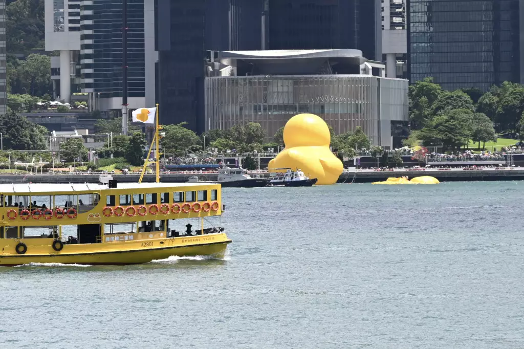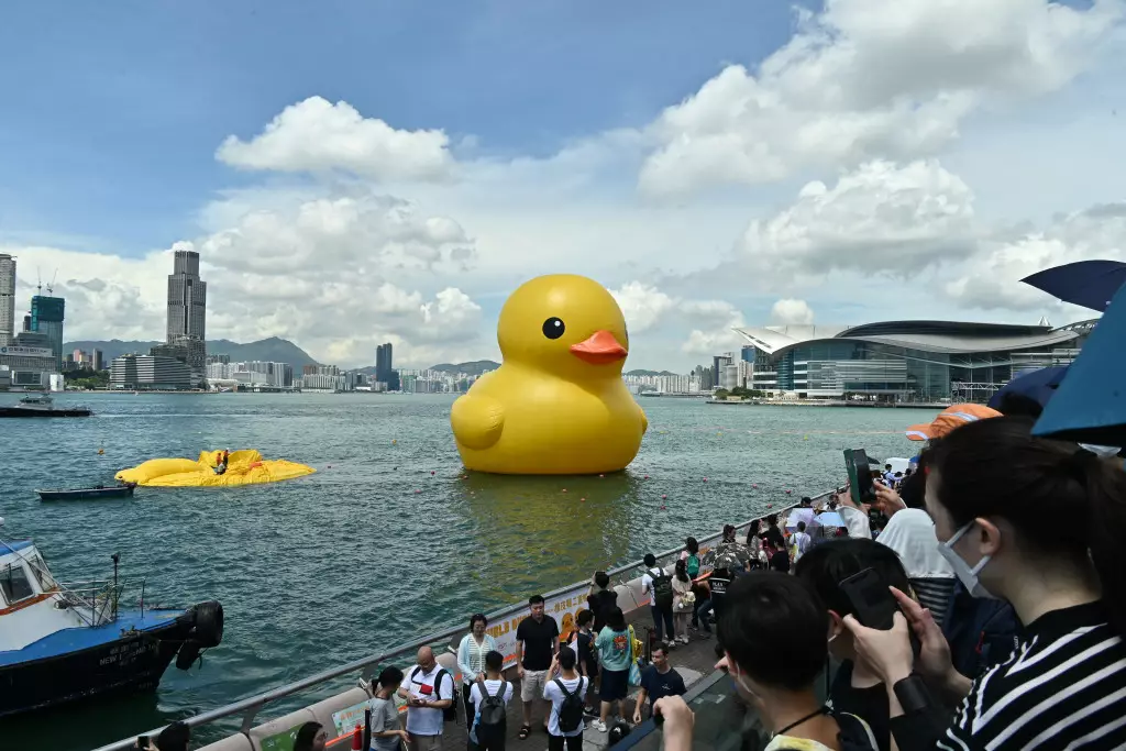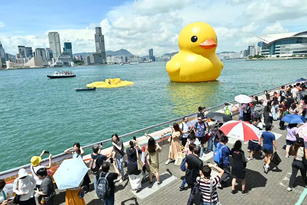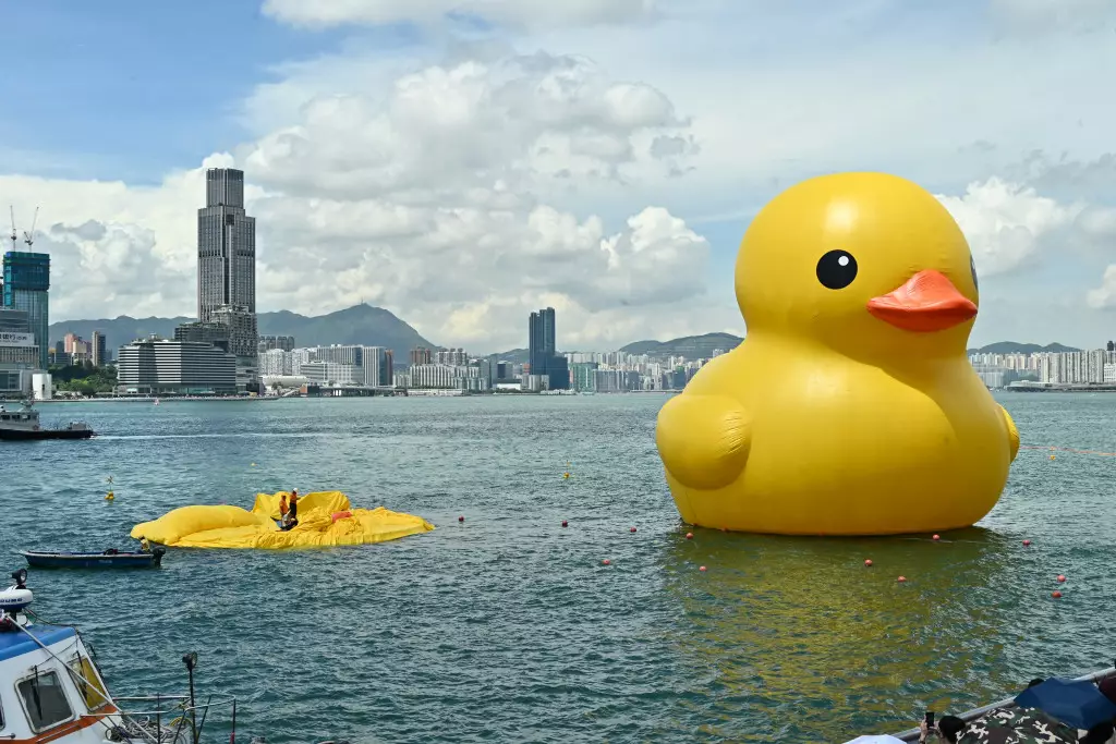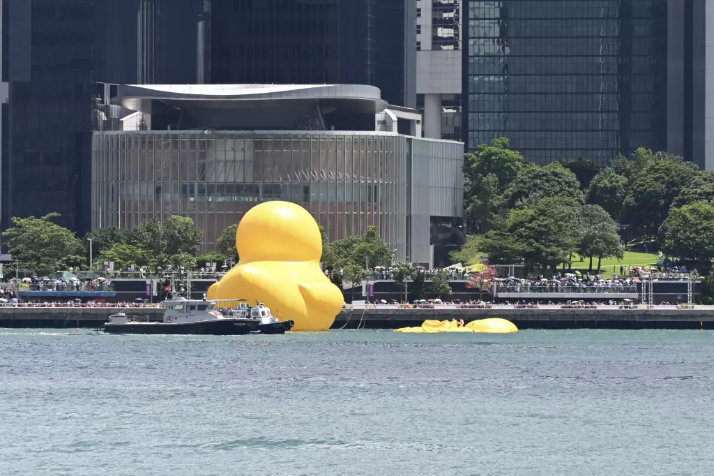 一隻黃鴨展覽首日即泄氣,另一隻只能「形單隻影」獨游維港。