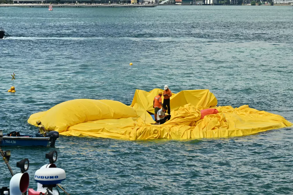 其中一隻「黃鴨」在下午1時50分突然漏氣。