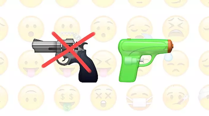 蘋果iOS 10作業系統將推出新版本emoji,新增過百圖像,最引人注目的包括以一支綠色水槍取代左輪手槍,未知是否對美國近期多宗槍擊事件的表態。