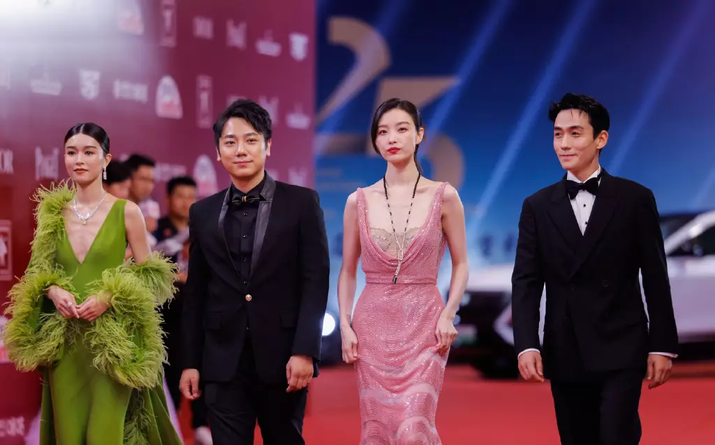 有份主演電影《消失的她》的內地影星倪妮和Janice Man(文詠珊)同樣搶眼,前者穿上粉紅色低胸大露背裝,後者則以綠色Deep V毛毛裙示人,惟身材瘦削的她心口驚現「排骨胸」,令網民大嚇一跳:「她真的太瘦了,胸前的肋骨根根分明,彷彿全身都沒多少肉。」至於謝霆鋒日前以白髮紮髻Look出席「抖音電影奇遇夜」,9日則換上全白西裝配斯文眼鏡Look,今次沒有綁起頭髮的他被指撞樣導演陳可辛。此外,《臥虎藏龍》周潤發和楊紫瓊亦於《上海國際電影節金爵盛典》中合體,楊紫瓊在台上表示很高興能回上海跟大家見面,並謂1992年拍畢《警察故事III超級警察》發現最愛還是拍電影,至今30年來一直沒有停下來,希望往後日子能繼續拍下去。
