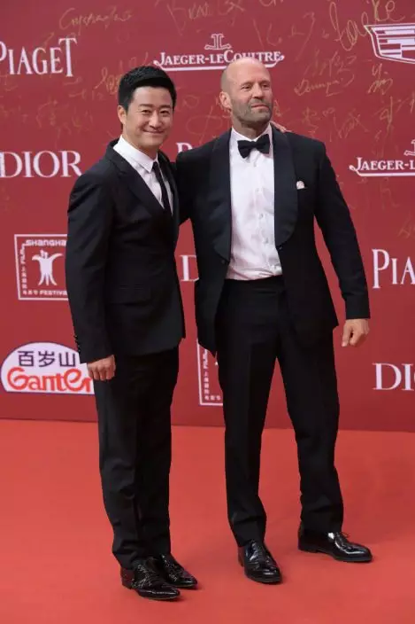 吳京(左)與積遜史達頓(Jason Statham)一起行紅地氈。