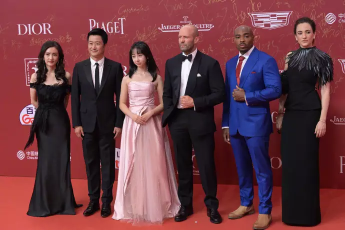 《極悍巨鯊2》一眾演員現身紅地氈。