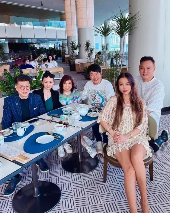 李道洪(右三)日前相約梁思浩(右二)到麗晶酒店食Tea。