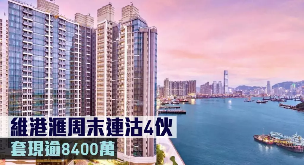 信和、會德豐地產、嘉華及爪哇合作發展的西九龍維港滙系列周末合共沽出4伙,套現逾8400萬。其中維港滙II連沽3伙,包括3B座17樓A室,面積604方呎,以1487.2萬沽出,呎價24581元;2座27樓B室,面積741方呎,成交價2306.7萬,呎價31130元,及6座23樓A室,面積794方呎,以1988萬售出,呎價25038元。