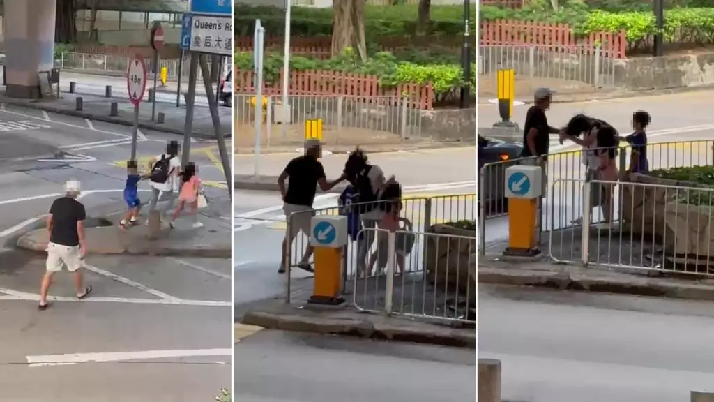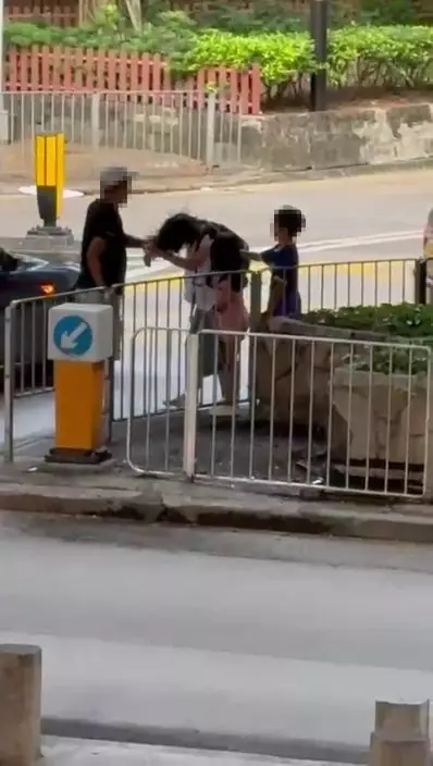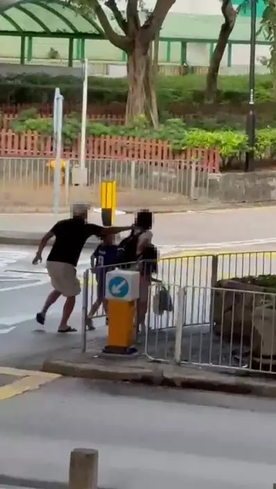 從讀者提供的片段所見,當時路上不時有車經過,女子急步拖住兩名小童過馬路,未有理會身後尾隨的頭戴白色鴨舌帽的男子。其時cap帽男突然急步向前跑追向3人,從後扯住女子頭髮,阻止她離開,而女子亦出手掌摑對方還擊。在場的兩名小童見狀嚇得立即尖叫,又上前企圖拉開cap帽男的手,惟cap帽男一直扯住女子的頭髮不肯放手,更出拳至少4次打向女子的臉部及頭部。