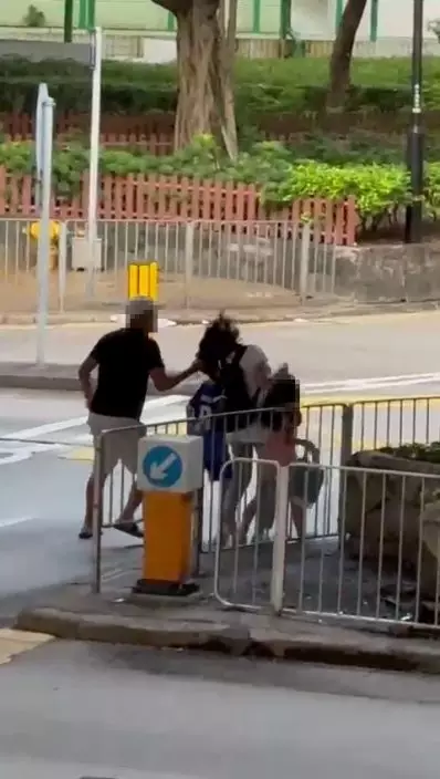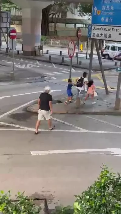 cap帽男最後將女子推出馬路,並上前繼續喝罵,而女子整理一下頭髮後,便繼續拖住兩名小童離開。不過,cap帽男未有罷休繼續尾隨,並加快腳步追向3