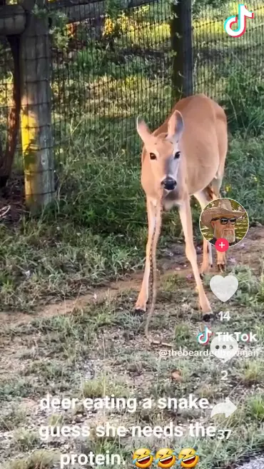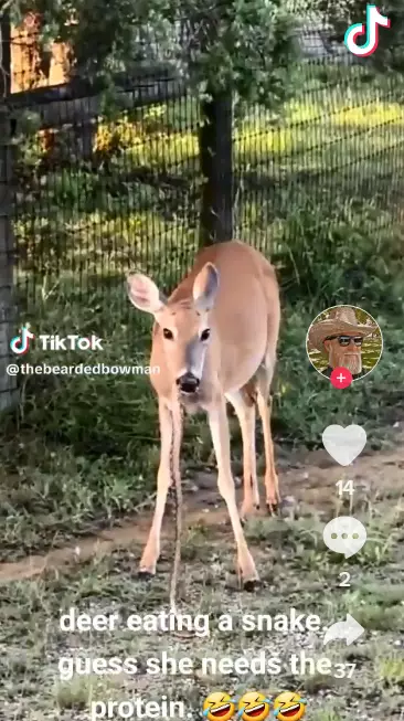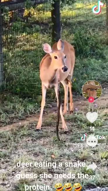 網友見狀都十分震驚,不少人第一次看到吃肉的草食動物,「這隻鹿太狠了」、「沒想到素食者也會開葷」、「第一次看到鹿打贏了蛇」、「這隻鹿仿佛立刻要變喪屍了」。