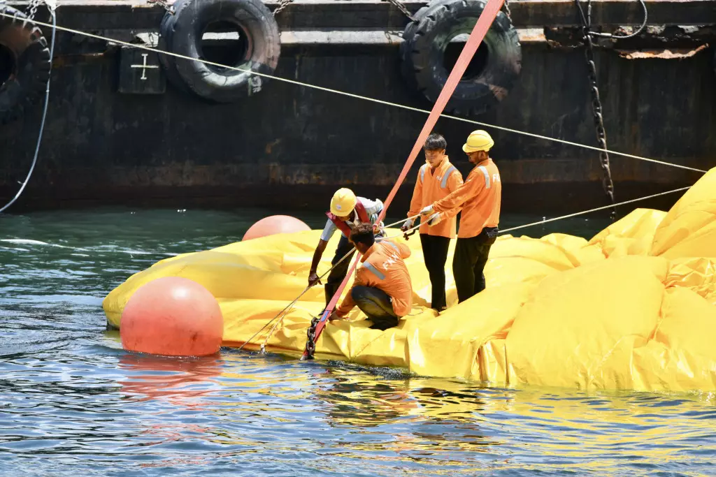 現場可見,船上設有機械吊臂,將橡皮連底坐浮台吊起,有工作人員為黃鴨重新充氣作準備,有大批市民在現場等候打卡。橡皮鴨於接近中午時分開始充氣,充氣後會再次在維港海面展出。