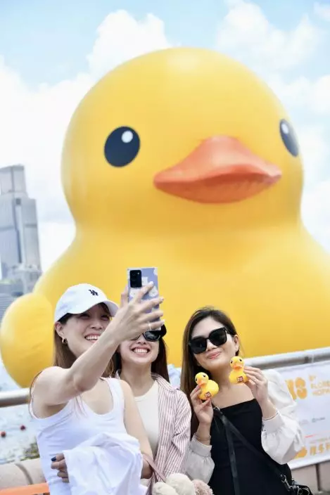 周日只剩一隻橡皮鴨,仍有很多市民前往打卡。(資料圖片)