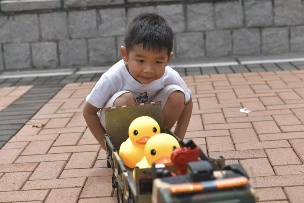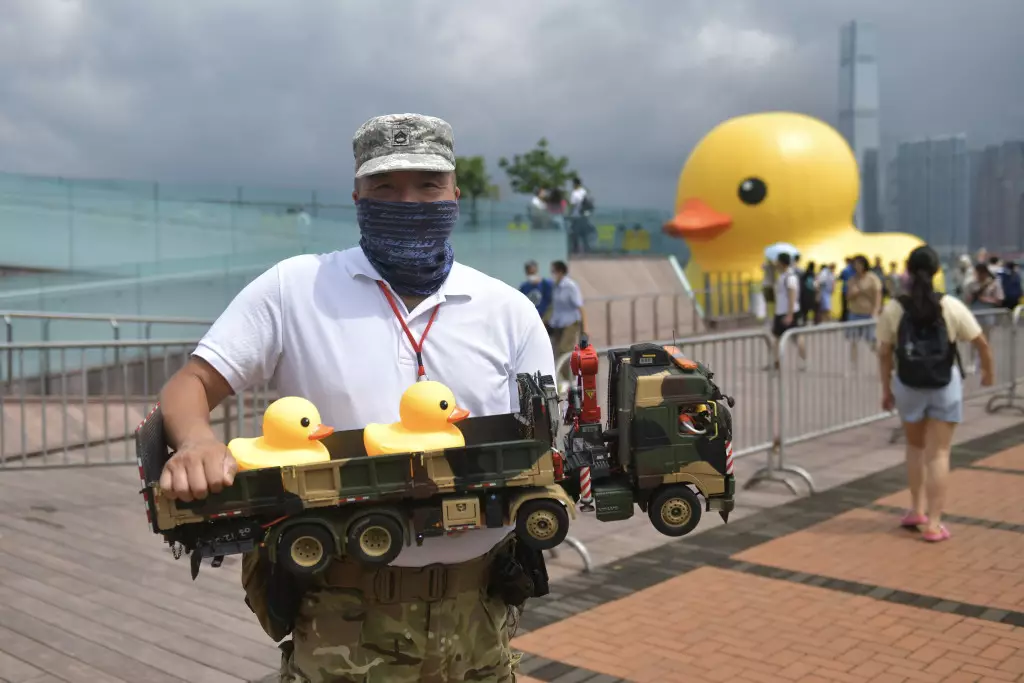 有市民帶同載著兩隻橡皮鴨仔的遙控車到海濱,稱「放心,呢兩隻唔會漏氣」。
