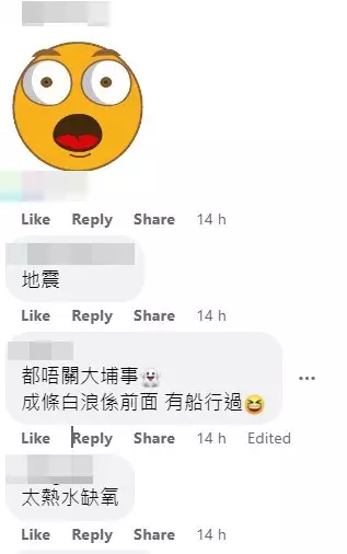 另有人指「(魚)驚都會呀」、「有船經過都會嚇到」。網上截圖