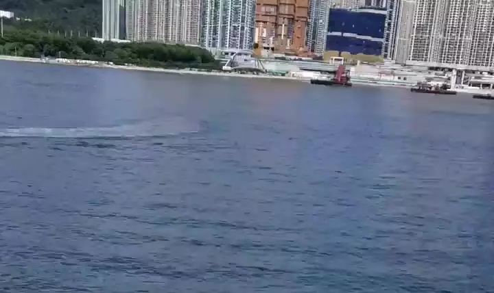 快艇在離岸不遠處駛過,畫出一道白痕。網上截圖