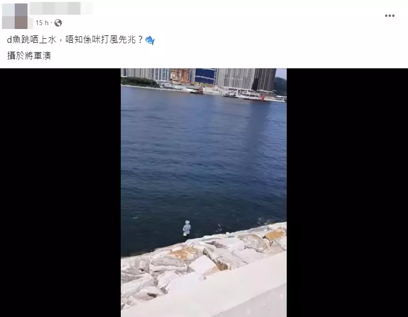 樓主指「d魚跳晒上水,唔知係咪打風先兆?攝於將軍澳」。網上截圖
