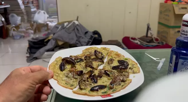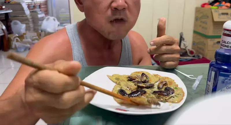 日前,台灣一名孫姓網友在FB群組「爆怨公社」發布影片,分享自己一鏡到底吃完一盤「蟑螂煎蛋」的經歷。從影片可見,男子端出一盤蟑螂煎蛋,上面鋪滿十幾隻杜比亞蟑螂,然後拿起筷子一挾直接送入口中,吃的津津有味,僅僅花了11分鐘時間他就把整盤蟑螂煎蛋吃完,在進食期間他還一邊評價「口感很脆,像是蝦子帶殼吃,幾乎沒什麼味道,還不錯,蠻好吃的」。