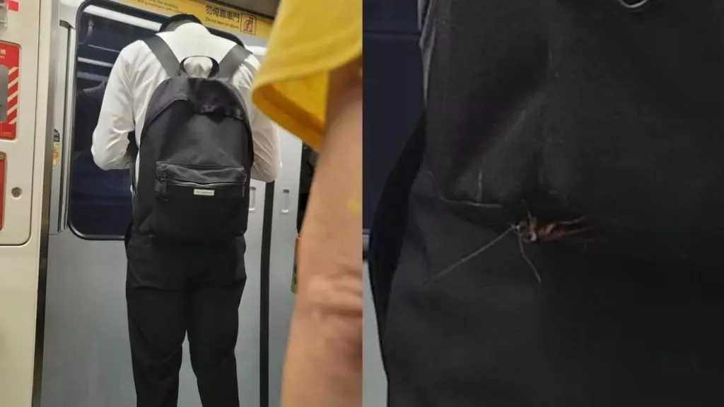 該網友在FB「爆料公社」分享了2張照片,並寫下「帶小強上地鐵」。從照片可以發現,他面前的男乘客背包上,有2條明顯的鬍鬚,且在將鏡頭放大特寫後,這才知道原來有隻蟑螂停在男乘客的背包上。貼文曝光後,引來大批網友的圍觀,大家紛紛留言表示,「好可憐,這種事到底要不要跟他講啊」、「如果起飛應該會釀成一番很大的騷動」、「整台車廂要報廢」、「這時候千萬不能驚動牠,不然封閉車廂很恐怖」。