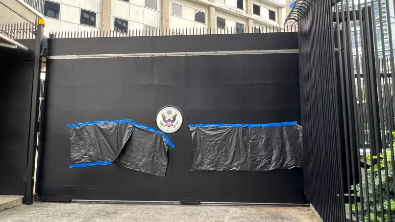 中環美國領事館外牆車閘遭塗鴉。