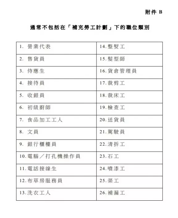 優化補充勞工計劃 政府暫停26職位不得輸入勞工規定