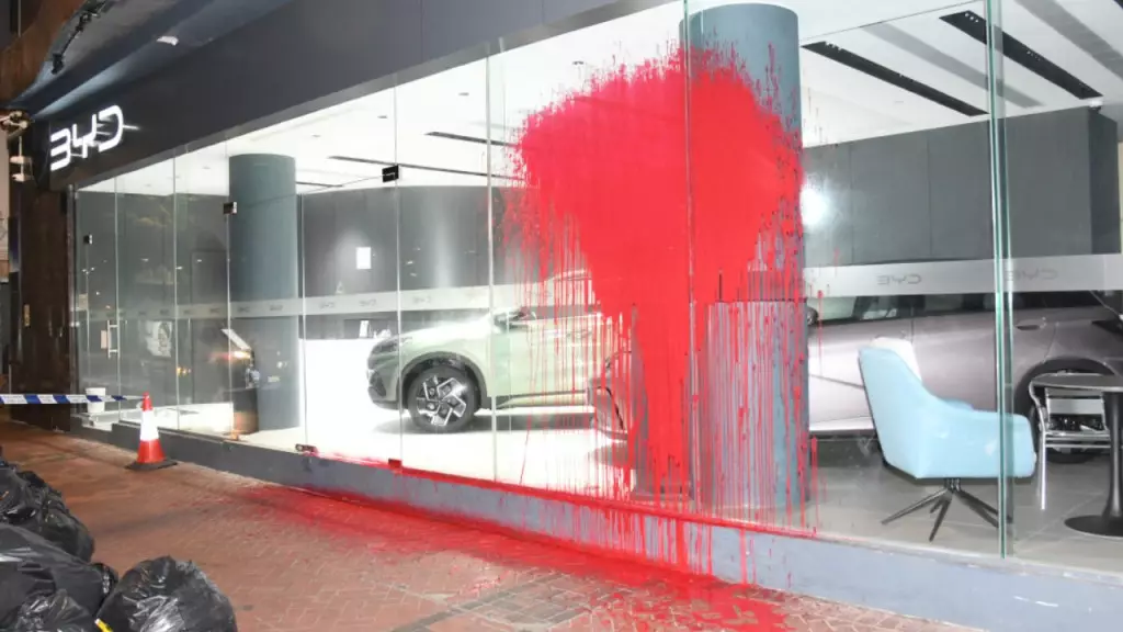 電動車生產商「比亞迪」(BYD)位於港九及新界共4間陳列室與服務中心,12日3小時內遭淋紅油及撞閘等連環破壞。消息指,比亞迪的香港代理公司,近期捲入生意業務糾紛,警方將根據此方向重點調查。目前警方仍在追緝兇徒,初步相信刑毀事件並非針對比亞迪汽車本身。