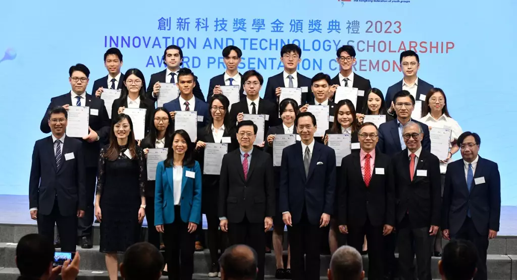 由創新科技署、滙豐及香港青年協會成立的「創新科技獎學金」13日舉行頒獎典禮,25位來⾃不同院校、修讀包括醫學、⽣物化學、計算機科學及物業管理學等學科,在創科⽅⾯有傑出表現的精英本科⽣得獎。他們每人最高獲頒 15 萬港元獎學金,到海外或內地頂尖學府交流學習,及於本地創科公司實習,並及可參與一系列精英培育項目。
