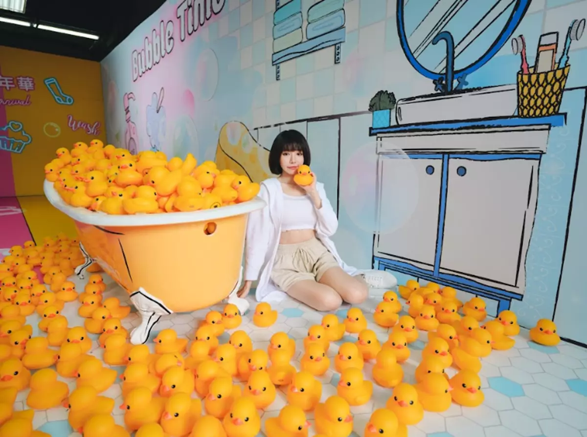 林明禎浴袍Look與橡皮鴨泡浴  昂坪360追鴨瘋狂打卡