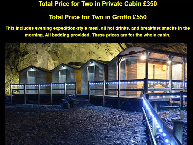 不過,想住世界最深的酒店,也不是每天都有機會的。酒店僅每周六開放一天,想要入住則需要提前預約,並且住宿費用亦不低,普通的小屋總價350英鎊(約3458元港幣),情侶小屋則550英鎊(約5434元港幣),費用裡包含了晚間探險式餐點、所有熱飲和早餐小吃,以及床上用品。